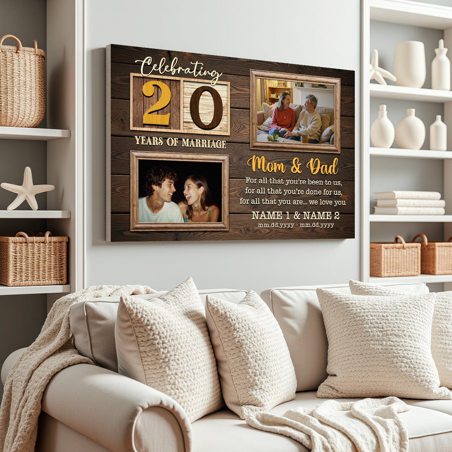 Personalized 20th Wedding Anniversary Canvas - Custom Wall Art Celebrating 20 Years of Marriage
