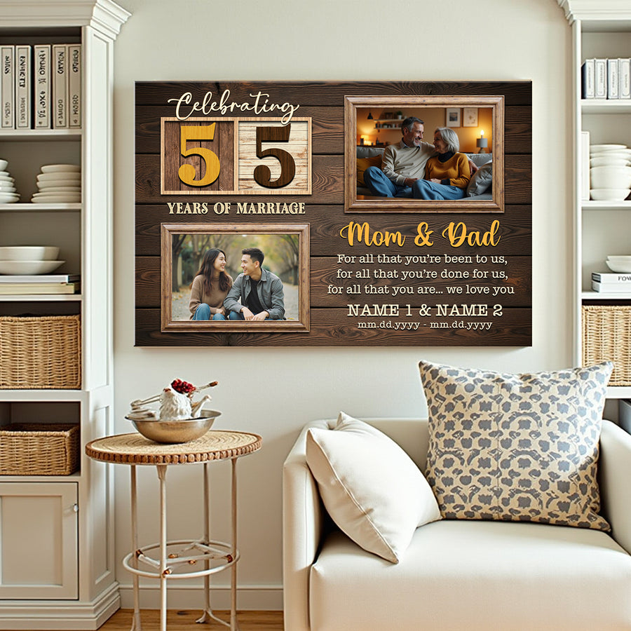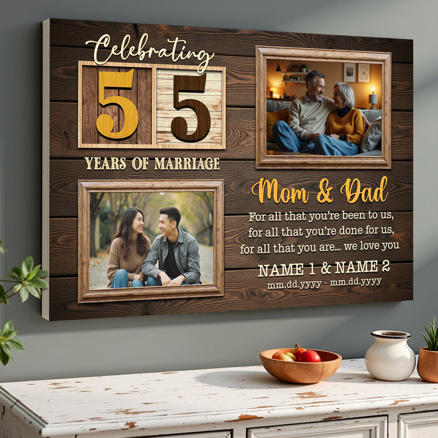 Personalized 55th Wedding Anniversary Canvas - Custom Wall Art Celebrating 55 Years of Marriage