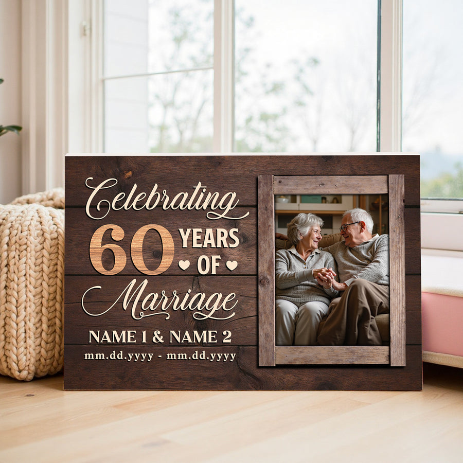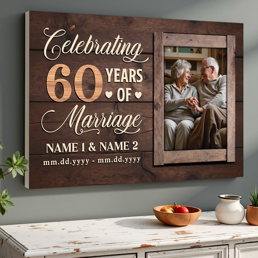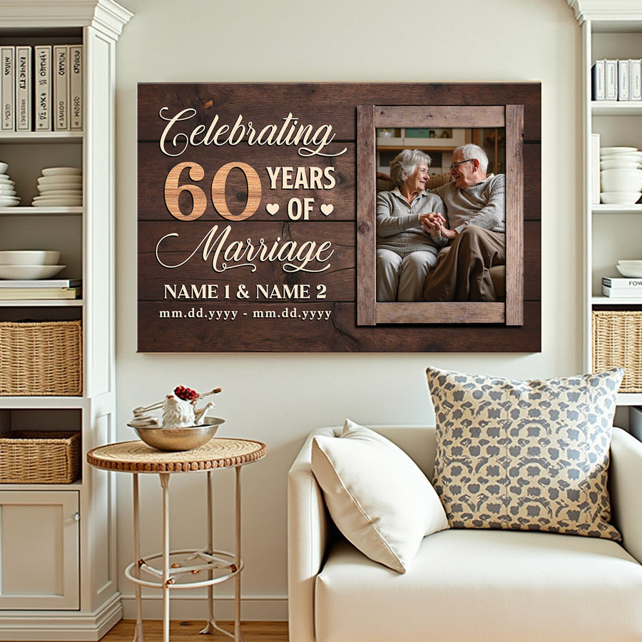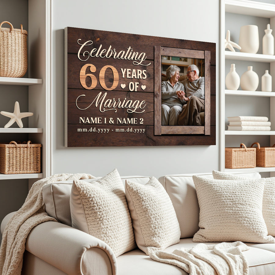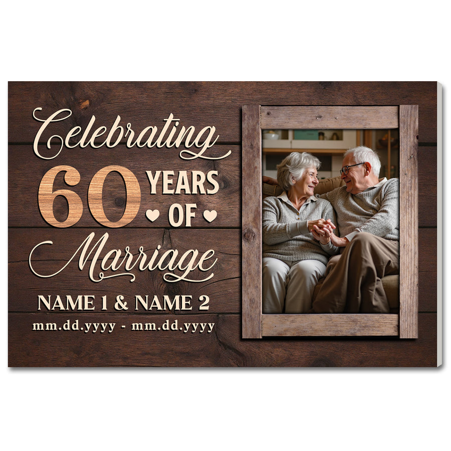 Commemorate 60 years of marriage with this personalized canvas, a timeless keepsake that celebrates the beautiful journey of two hearts. Ideal for anniversaries or special moments.