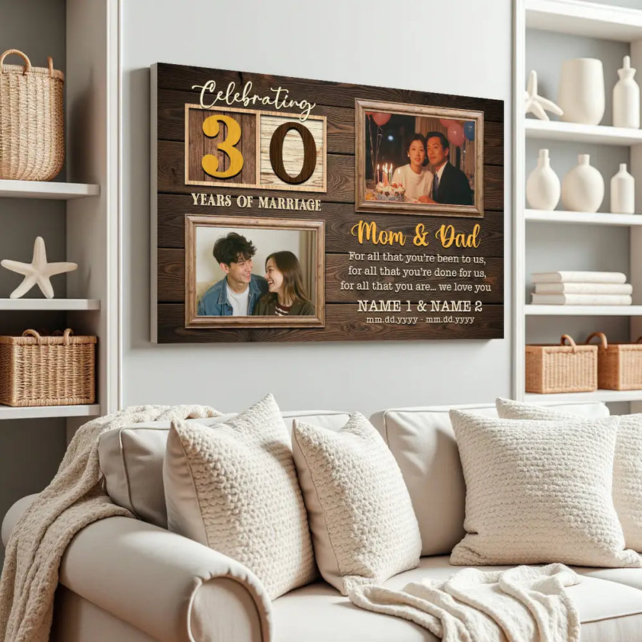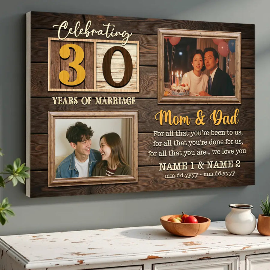 Personalized 30th Wedding Anniversary Canvas - Custom Wall Art Celebrating 30 Years of Marriage