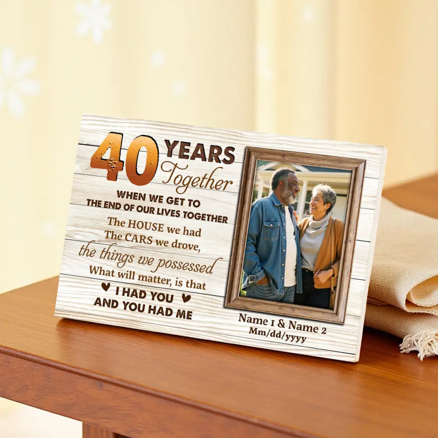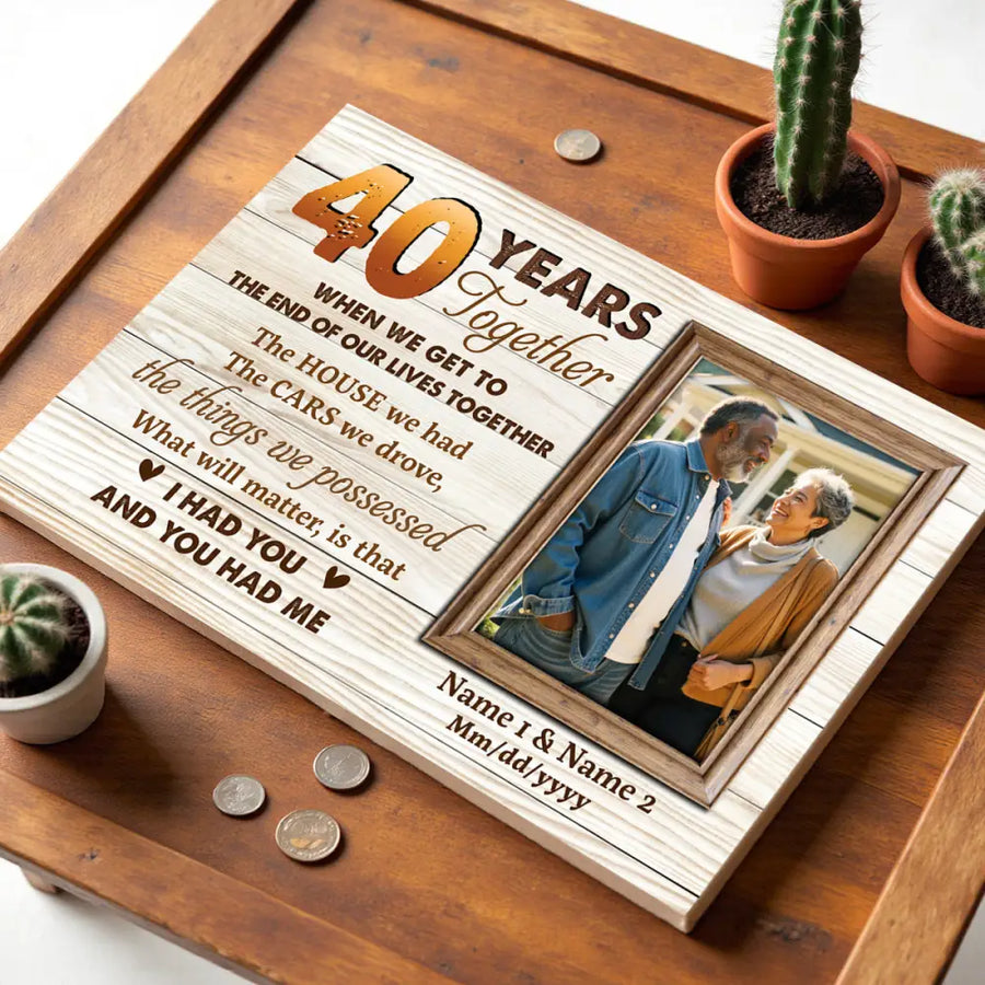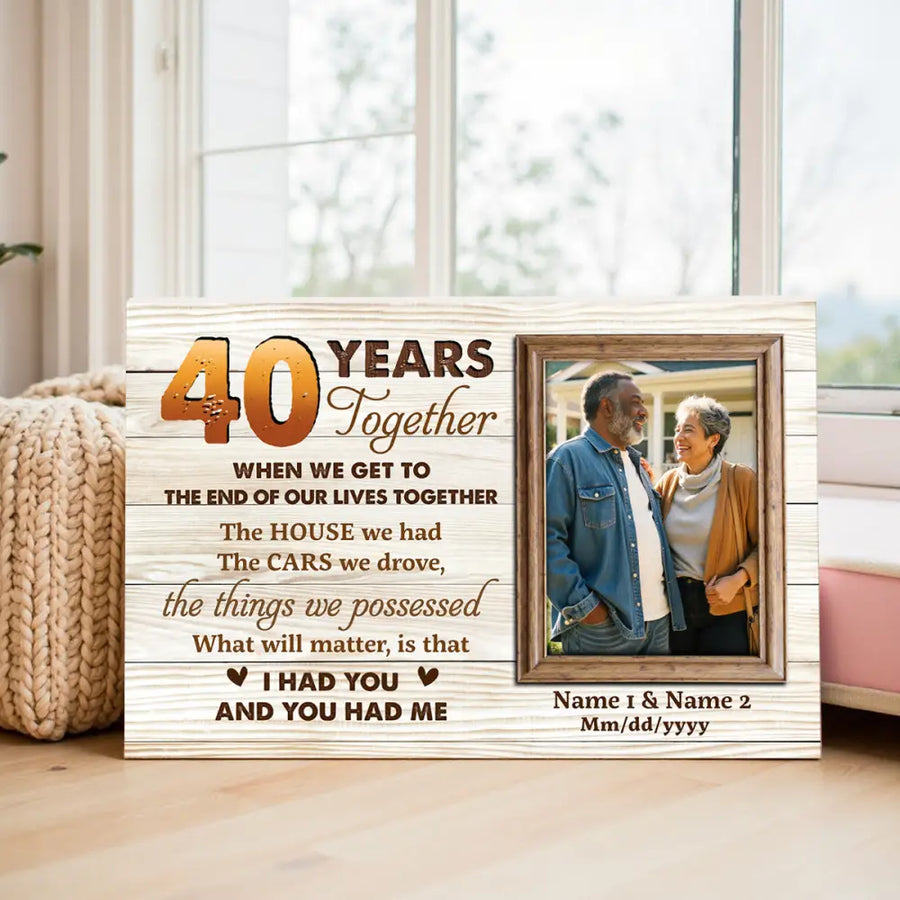 Celebrate 40 years of love and memories with this When We Get to the End of Our Lives Together personalized canvas. Add your photo and names to create a meaningful anniversary wall art that captures the essence of lifelong love. A perfect 40th anniversary gift to honor your journey together and cherish every moment shared.