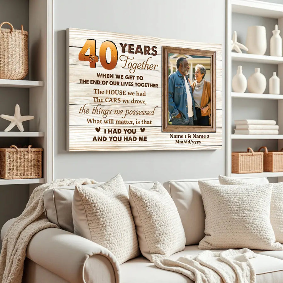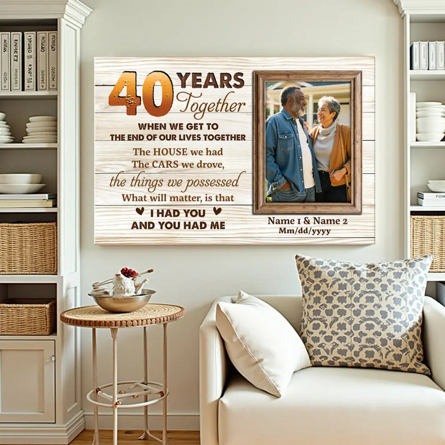 Personalized 40 Years Together Canvas - Custom Anniversary Couple Wall Art