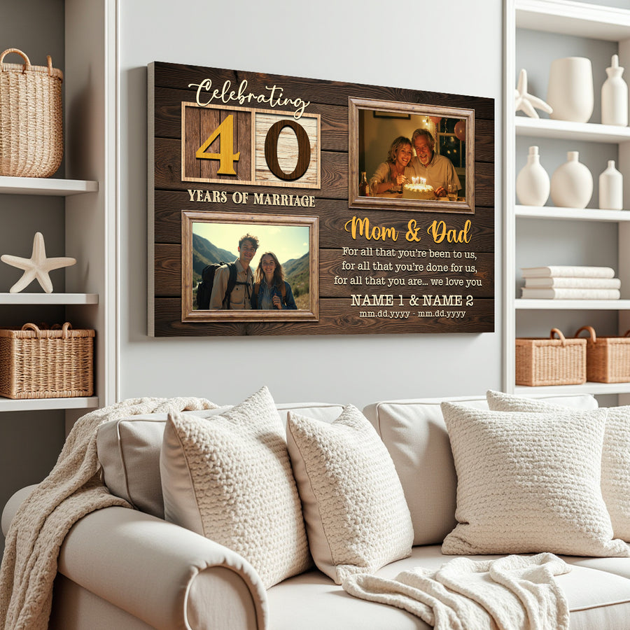 Personalized 40th Wedding Anniversary Canvas - Custom Wall Art Celebrating 40 Years of Marriage