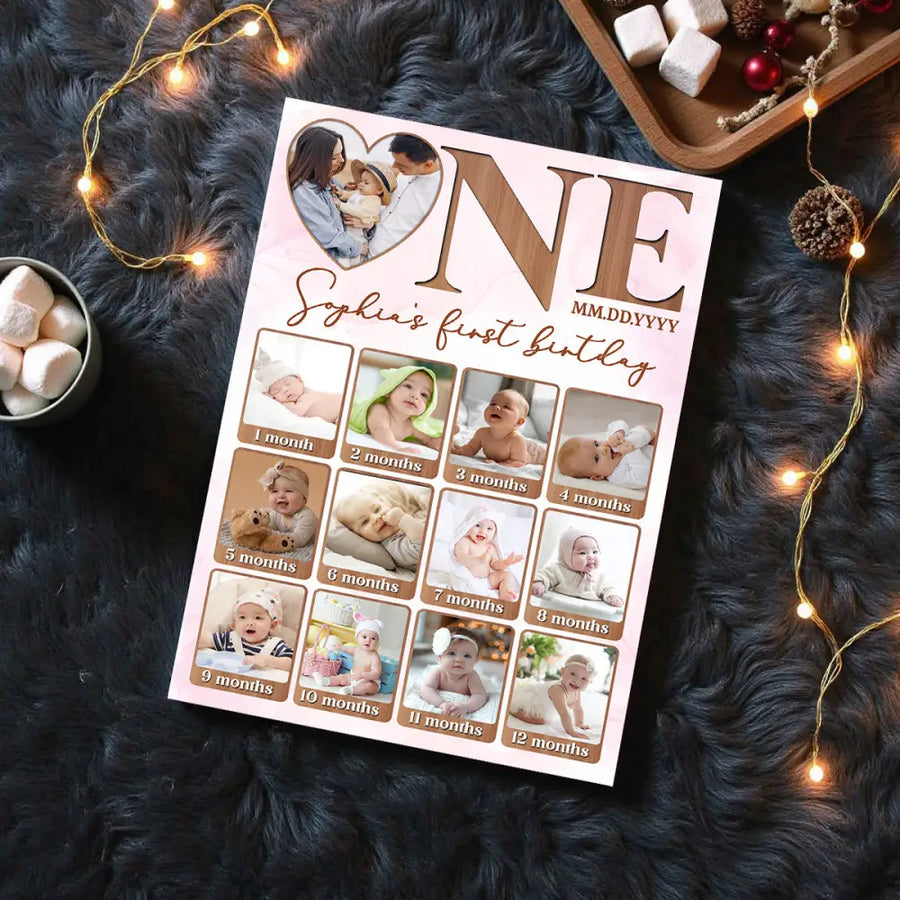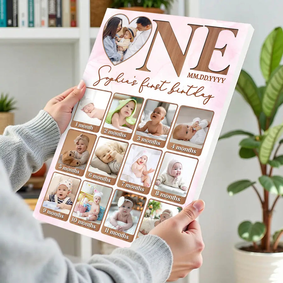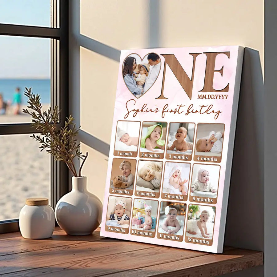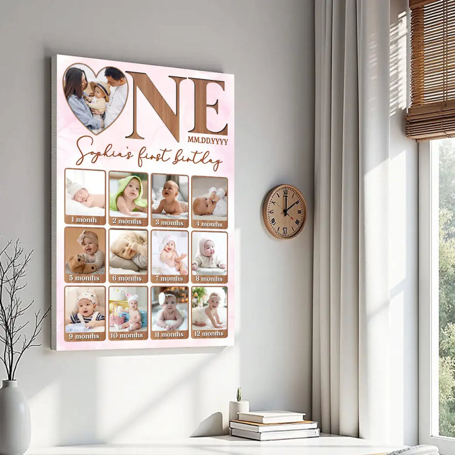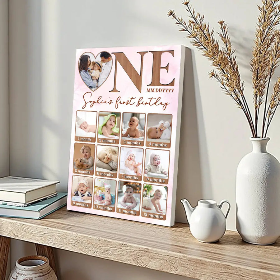 Personalized One First Birthday Canvas, Custom Photo Wall Art Gift For Baby, First Birthday Gift