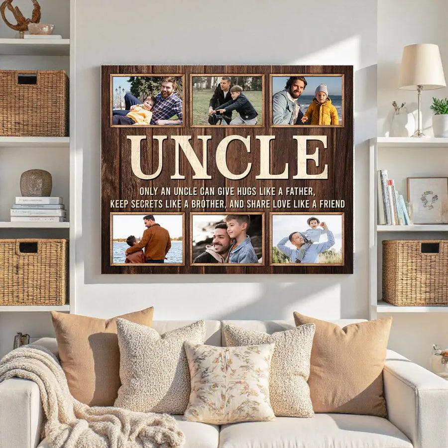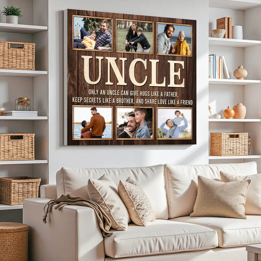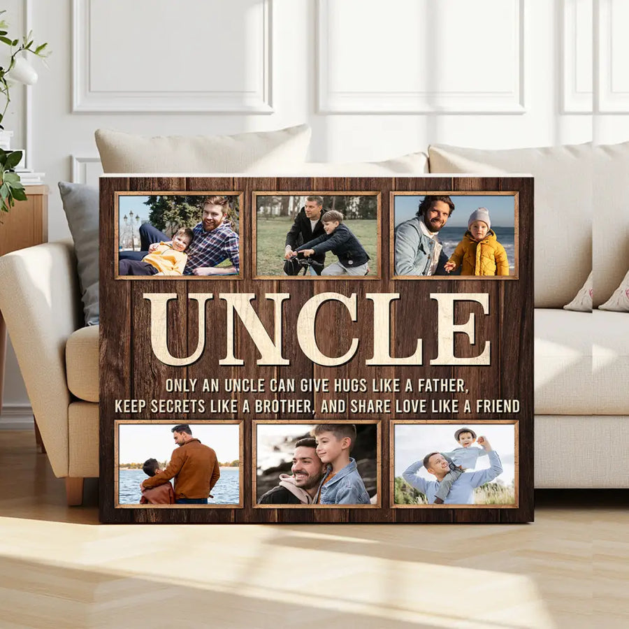 Personalized Only an Uncle Can Give Hugs Canvas, Custom Photo Wall Art Gift For Uncle On Birthday Or Father’s Day