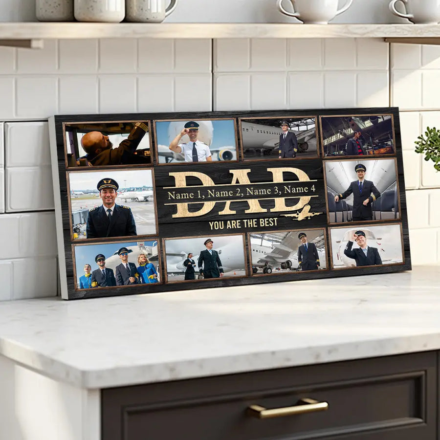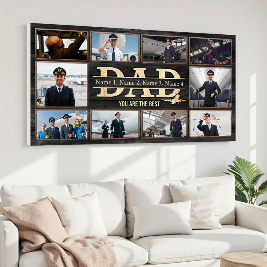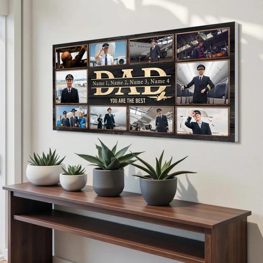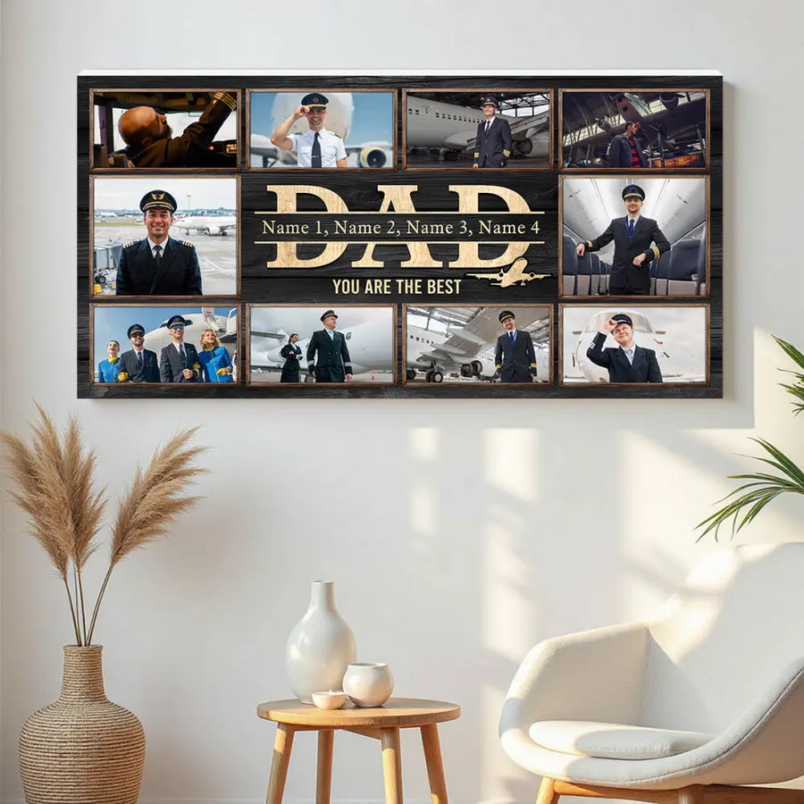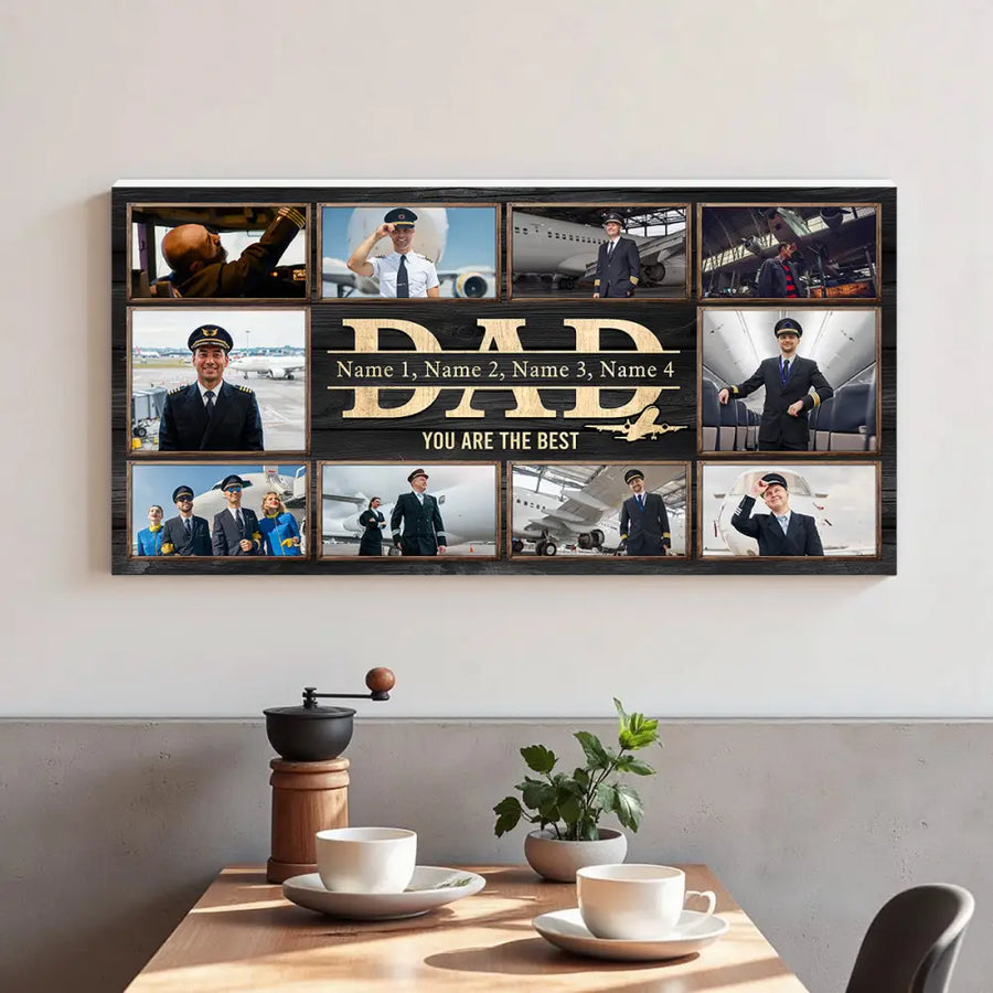 Personalized Pilot Dad Canvas, Custom Photo Wall Art Father's Day Gift for Aviation Father