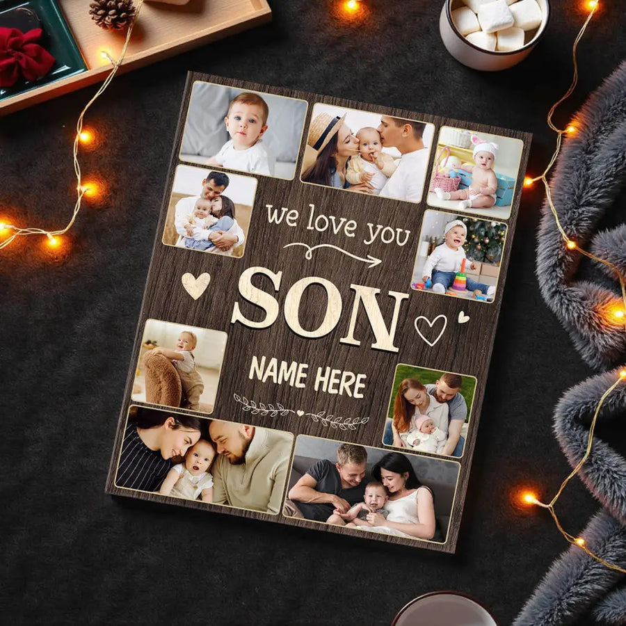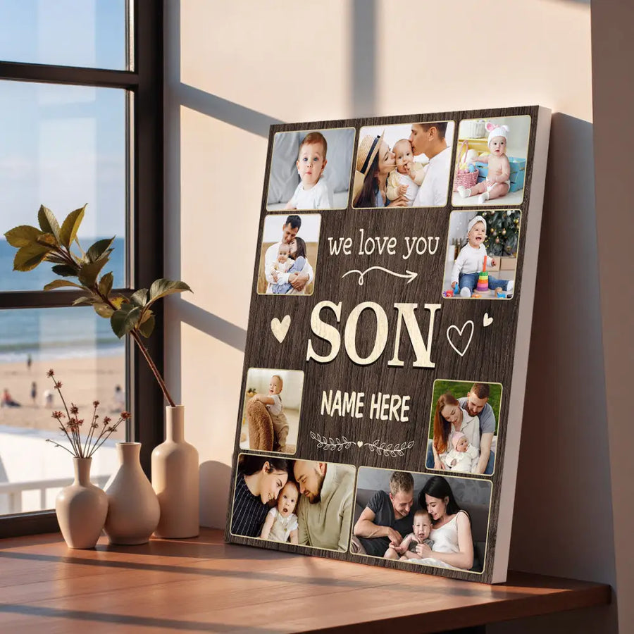 Personalized Son We Love You Canvas, Custom Photo Wall Art Gift For Son On Birthday Or Special Moments