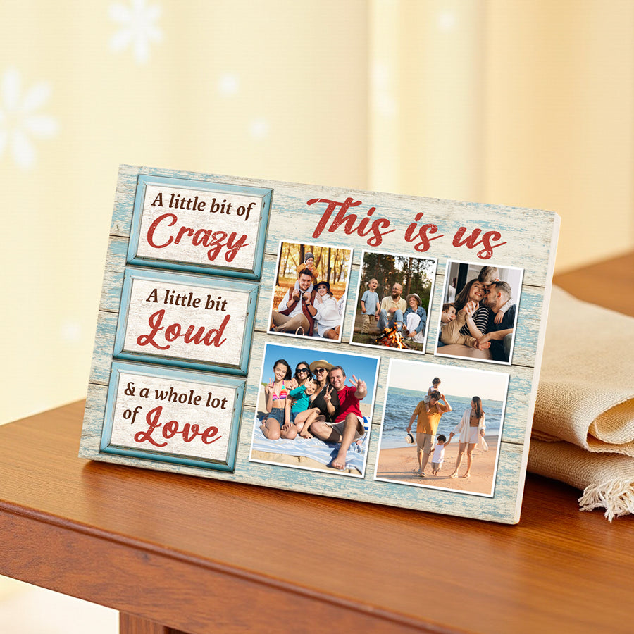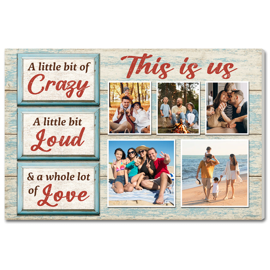 Celebrate your family with this personalized This Is Us canvas, a fun, loving design you can customize with your own photos for a truly unique home décor piece.
