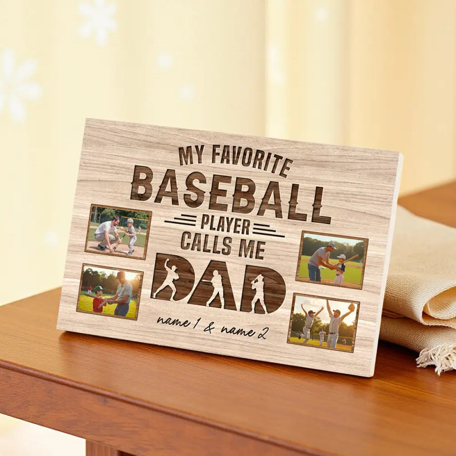 Show Dad your love with this personalized canvas My Favorite Baseball Player Calls Me Dad. A heartfelt gift perfect for his home or office.