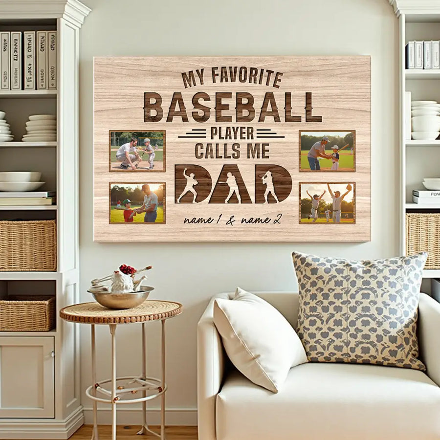 My Favorite Baseball Player Calls Me Dad - Custom Photo Canvas Gift