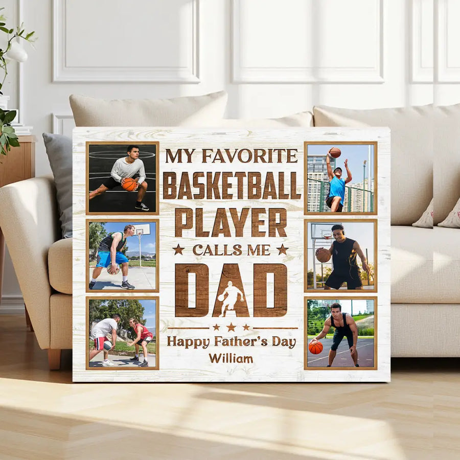 Personalized My Favorite Basketball Player Calls Me Dad Canvas Wall Art, Custom Photo Gift From Son Or Daughter For Father’s Day Or Birthday