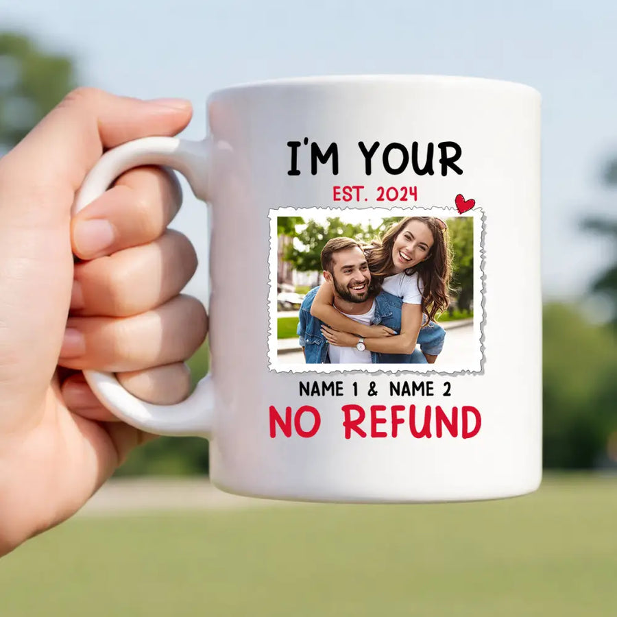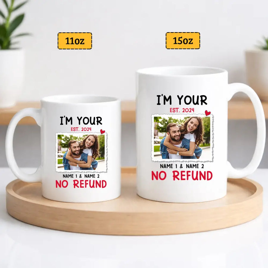 Personalized I'm Your No Refund Coffee Mug, Custom Couple Photo Valentine's Day Gift for Boyfriend or Girlrfriend