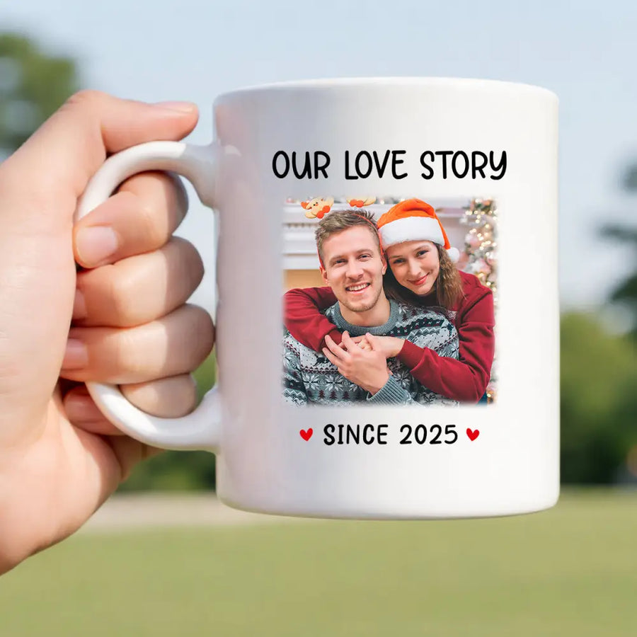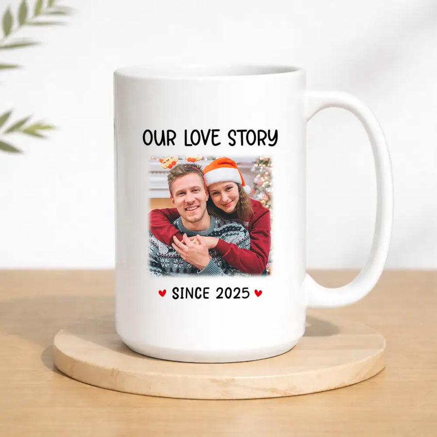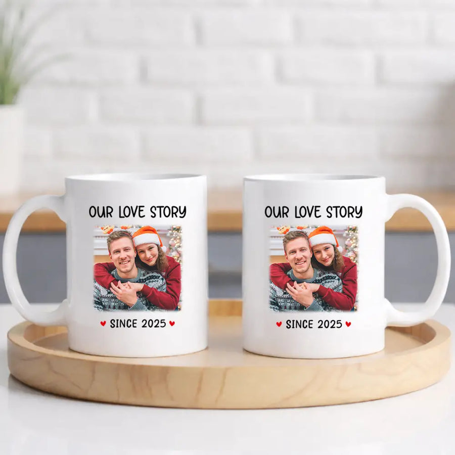 Personalized Our Love Story Coffee Mug, Custom Photo Couple Valentine’s Day Love Gift